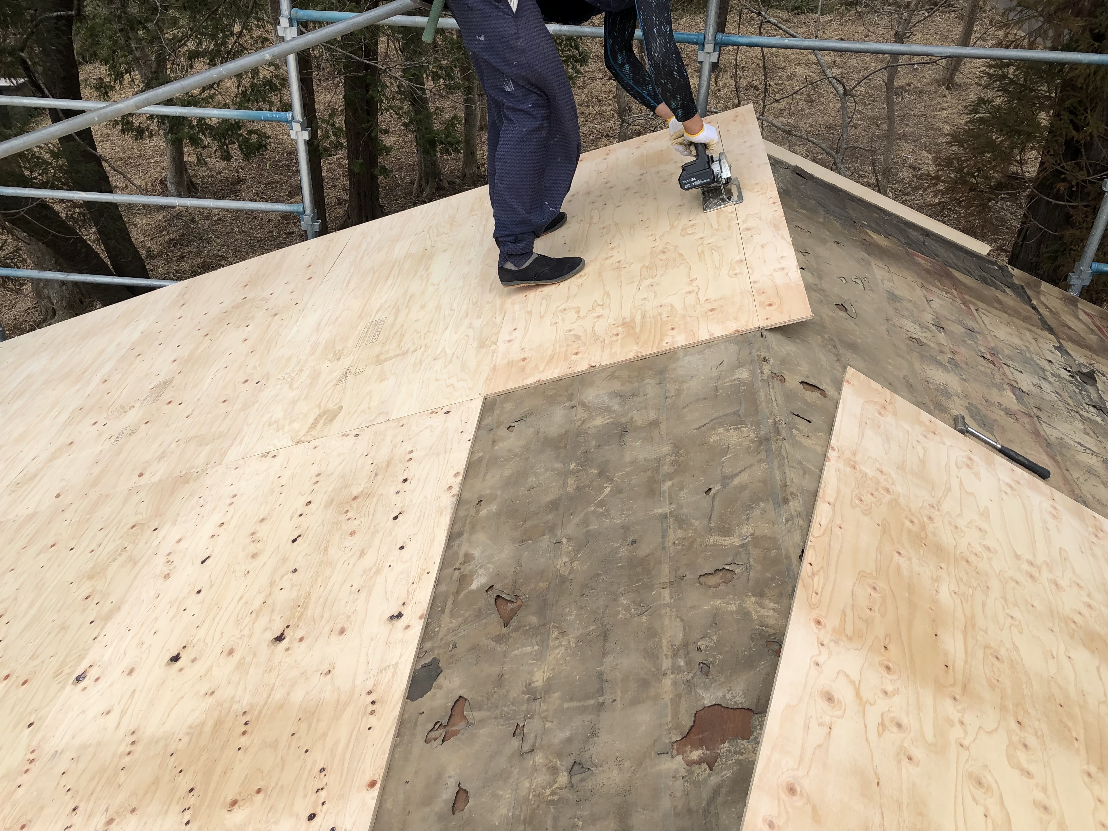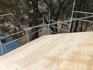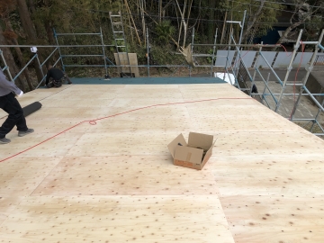 | 屋根の構造を強くするため構造用合板を増し張りしていきます | ||||||||||||
