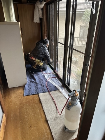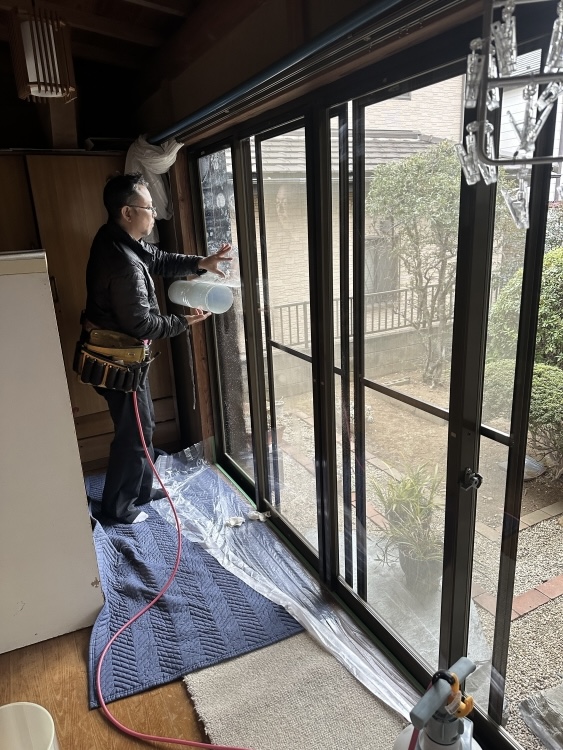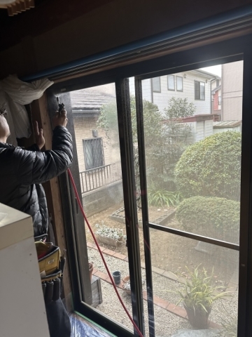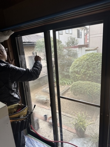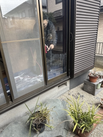| 養生をしてから窓ガラスの清掃です | ||||||||||||